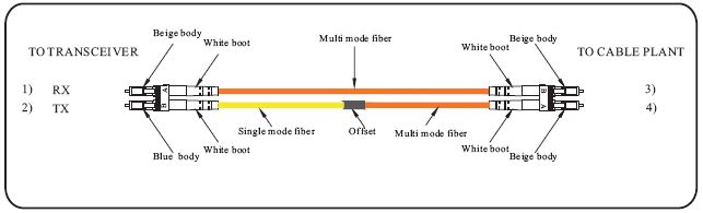 Mode conditioning patch cords are designed for longwave(1310nm) Gigabit Ethernet applications over multimode fiber. They consist an offset connection of a SM fiber to a MM fiber. There are two MM fibers on one end and one MM and one SM fiber on the other. This patch cords is required with -LX or longwave Gigabit Ethernet transceivers that use both SM and MM fibers. When launching into a MM fiber, the transceivers can generate multiple signals that cause Differential Mode Delay (DMD) which can severely limit transmission distances. A mode conditioning patch cord removes these multiple signals, eliminating problems at the receiver end.